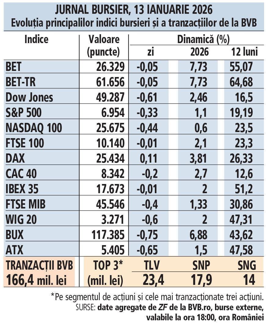 📰 Evoluția principalilor indici bursieri la BVB și impactul economic al investițiilor majore Bursa de Valori București (BVB) continuă să joace un rol esențial în dezvoltarea economică a României, cu o apreciere semnificativă a bursei în 2025, care a generat un randament record de 19,2% pentru fondurile de pensii Pilon 2. Această creștere reflectă nu doar încrederea investitorilor, ci și dinamica pieței financiare locale. În paralel, investiții majore în infrastructură, cum ar fi metroul de pe Magistrala 6, cu un buget de 1,8 miliarde de euro, subliniază angajamentul față de dezvoltarea pe termen lung. Cu toate acestea, provocările persistă în sectorul energetic, unde fluctuațiile prețurilor afectează stabilitatea pieței. De asemenea, închiderea fabricii unui important producător auto din Ploiești, care a dus la pierderea a peste 1.000 de locuri de muncă, arată vulnerabilitățile din economie. BVB rămâne un indicator vital al sănătății economice și al încrederii investitorilor în viitorul României. 🔗 https://www.zf.ro/burse-fonduri-mutuale/jurnal-bursier-13-ianuarie-2026-evolutia-principalilor-indici-23012275 Source: Ziarul Financiar
